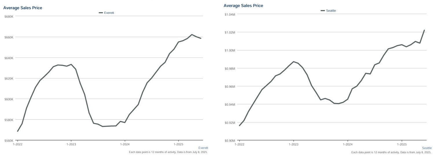In 2025, Everett remains more affordable than Seattle and many Eastside suburbs. Median home prices have seen steady appreciation, but inventory levels are gradually improving. With a mix of historic homes, new builds, and condo options, first-time buyers and move-up buyers can still find great value here—especially if you work with a local expert who knows how to move quickly in this competitive market.